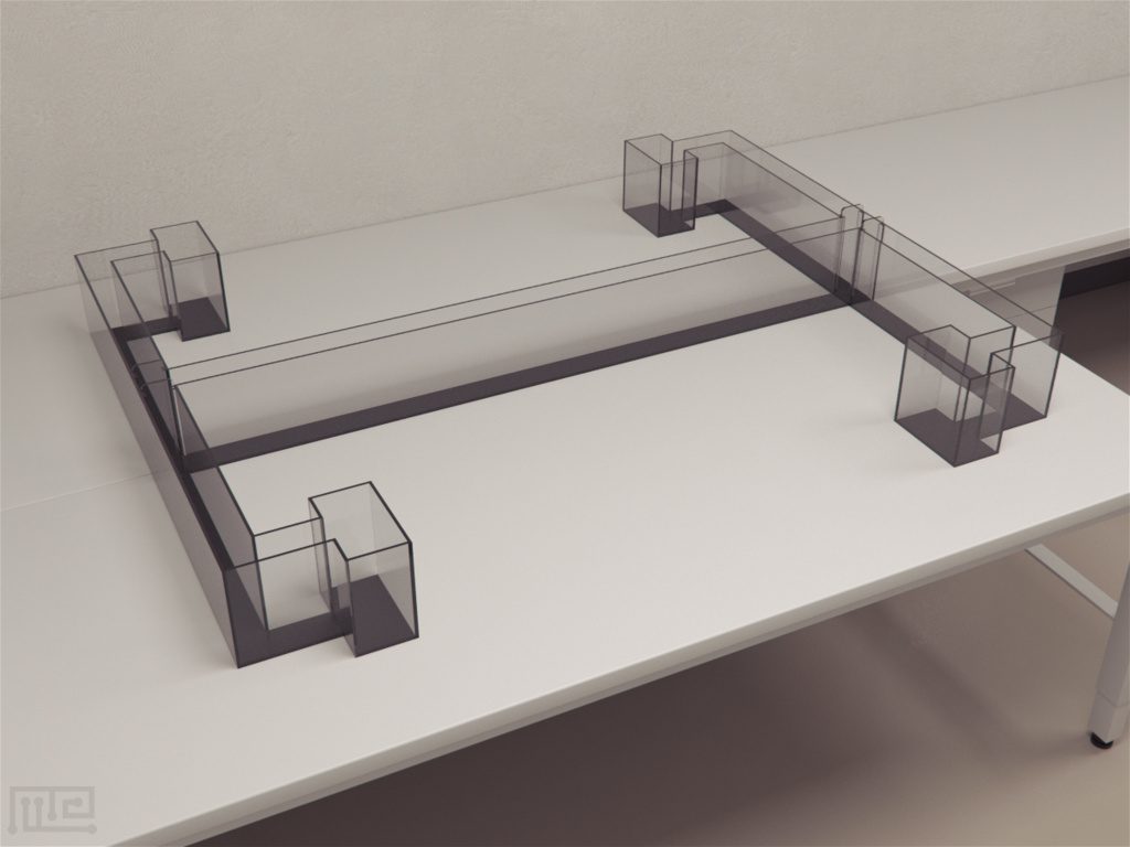 The Olfactory H-Maze is kept on a square table, at least 160 cm above the floor. Tests using this apparatus are done under an overhead light of constant intensity and regulated temperature. Neutral air is passed through the entire maze to eliminate pre-existing odor cues from hampering the performance of the test subjects. Clean the apparatus before use
