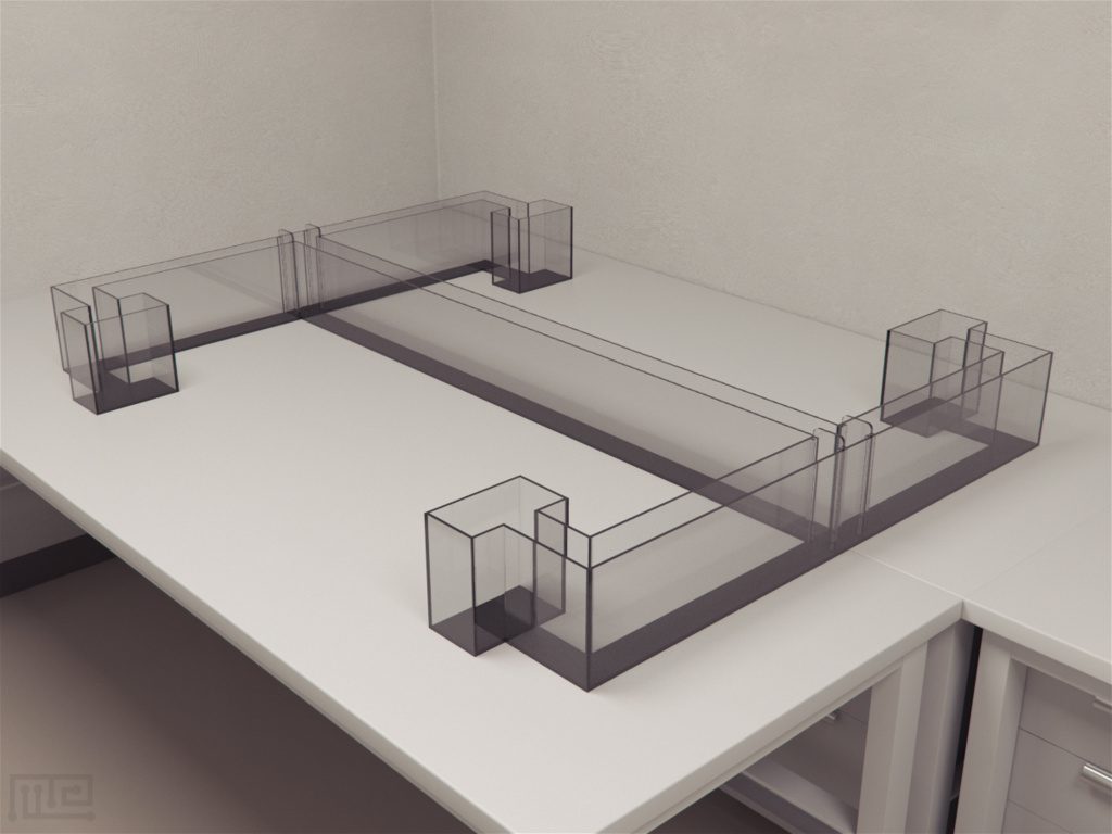 The apparatus is made of plastic and is shaped like a capital ‘H.’ There are 2 testing chambers that are linked by a tube which is 5 cm in diameter and 23 cm in length. The ends of the test chambers are connected to empty cubes (sides 6 cm) that are equipped with inverted fans to eliminate olfactory stimuli air from the outside extremities of the tubes. At the end of each of the testing tubes, there are water, air and odor ports. The size of the H-Maze is such that it allows for easy movement of mice, rodents and other primates. Photoelectric cells are located 5 cm from the end of the tubes. These cells help to detect the movement of animals inside the maze. The apparatus is usually kept at least 160 cm above the floor