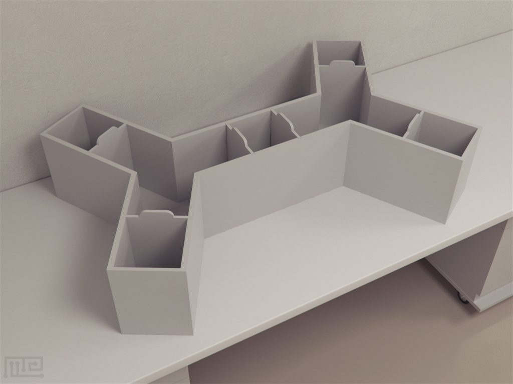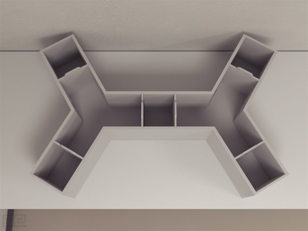 Double Y Maze apparatus is shaped like two Y-Mazes connected at the stem. It is constructed using plexiglass and has 6 identical testing chambers. The ends of the goal arms are equipped with goal boxes that can be closed off with the help of guillotine doors. Guillotine doors are also present in the central joining arm between the two Y-Mazes to create a central box. Small fans are placed throughout the apparatus to aid in ventilation. They also provide a constant source of background noise. To observe the activity of rodents inside the apparatus, seven photo emitters and detectors are strategically placed throughout the apparatus. Three of these are divided along the width while the other 4 are placed along the length of the apparatus