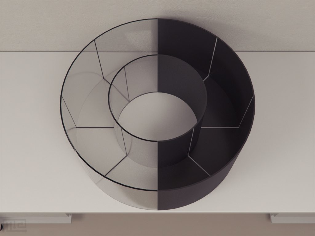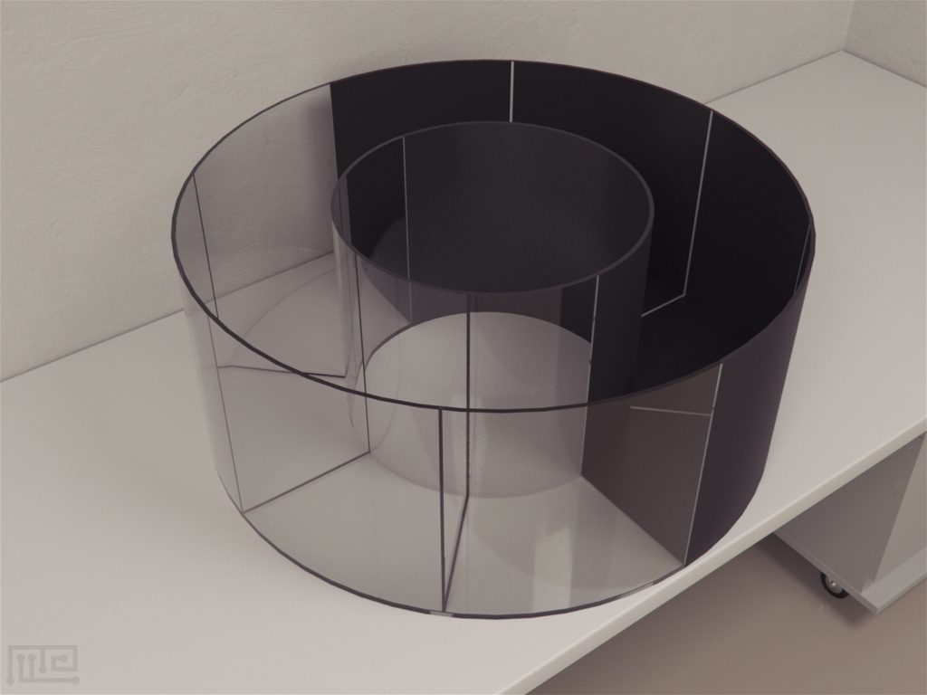 cLDB consists of a circular apparatus with an inner and outer alley; half of which is black and the other half is transparent. Both the inner and outer wall are 350 mm high and have diameters of 430 mm and 830 mm respectively