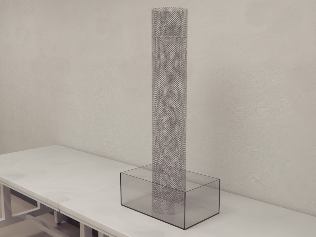 The KF Technology rodent climbing tower is a rodent housing with a steel wire mesh wtih cross stripes of approx 5mm. Mice are encouraged to voluntarily climb the 100-cm tower to drink water from bottles placed at the top of the tower
