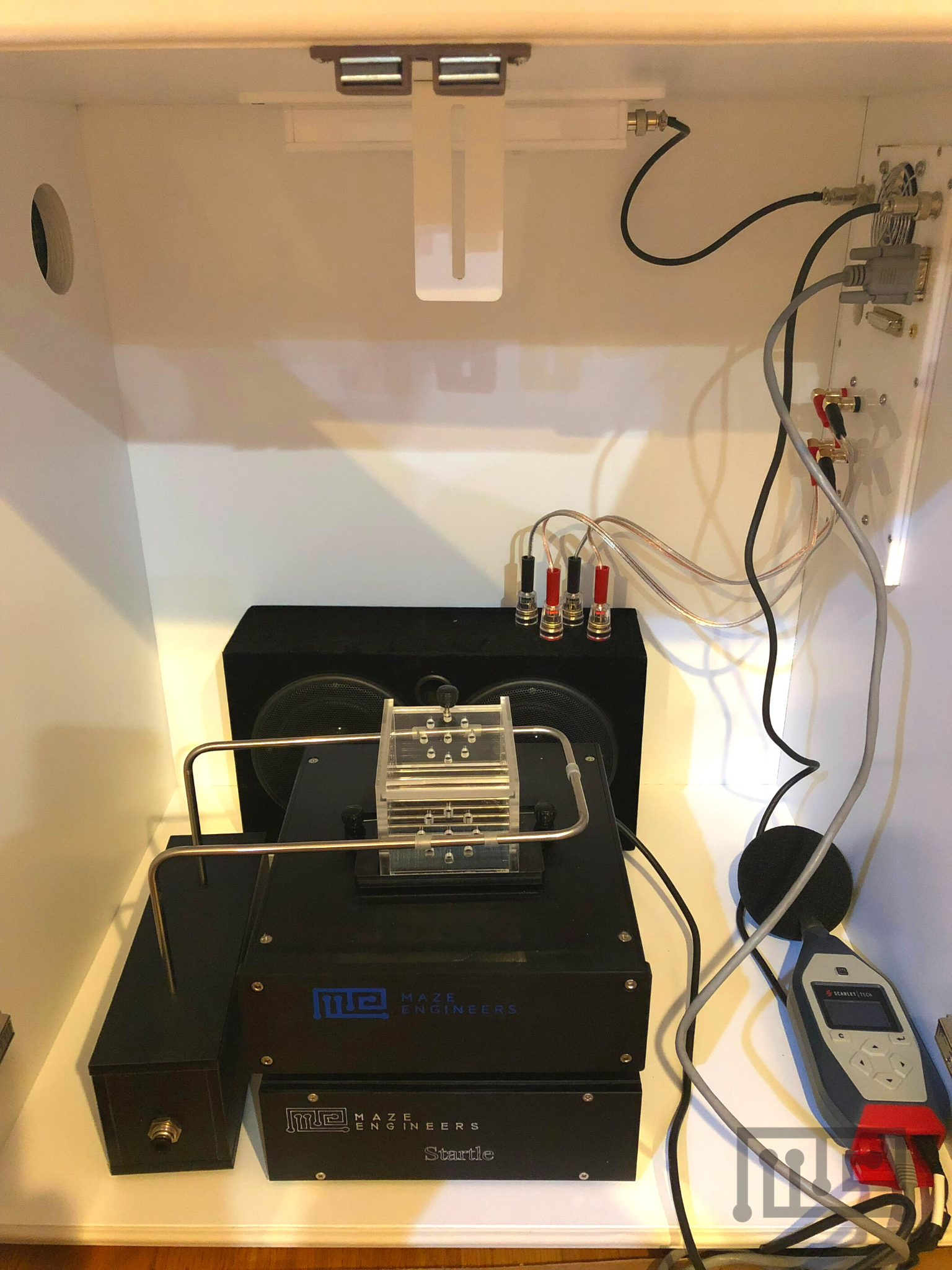- The main controller connects to the PC via a USB (RS-232) cable and communicates with Maze Engineers Conduct Tremor software on the PC