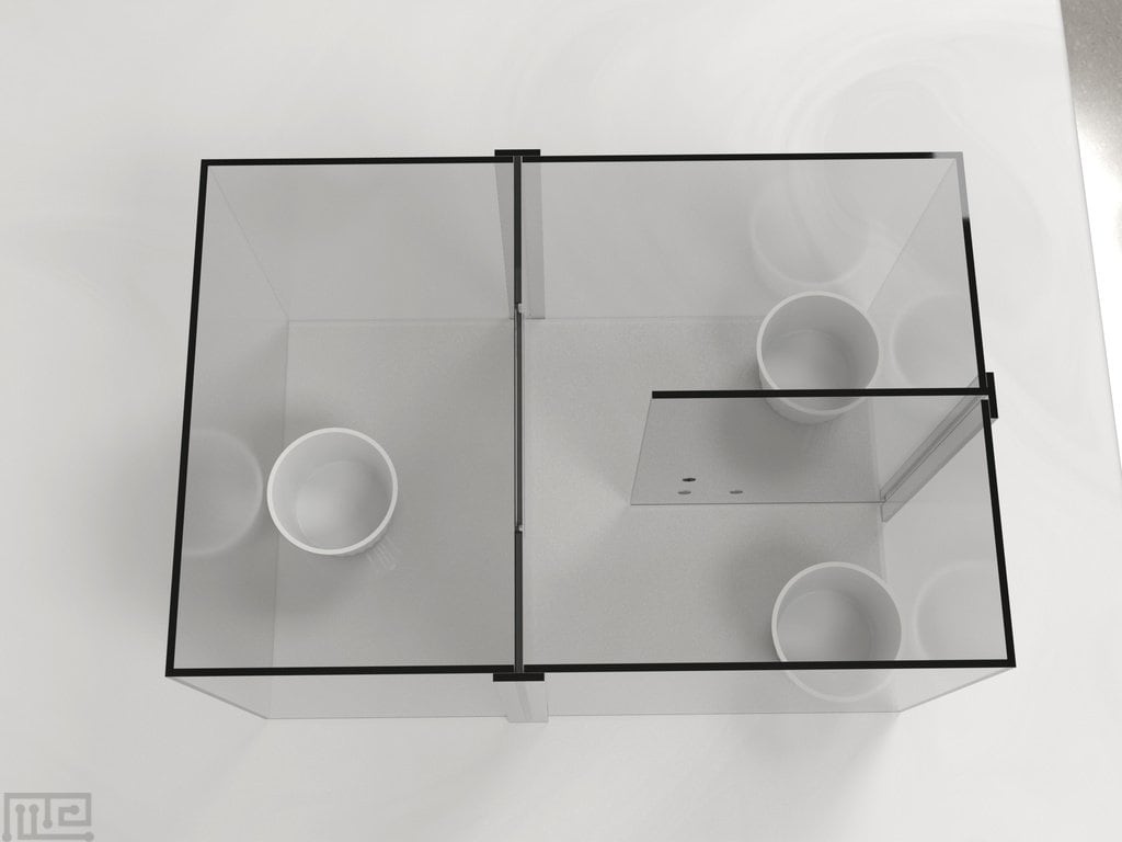 | 1 Chamber (L: 12 in, W: 8 in, H: 7 in). With door, guillotine). Start area: 5 in x 8 in. Testing area: 7 in x 8 in |