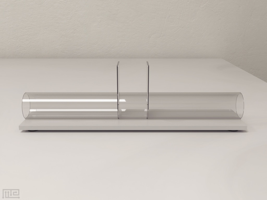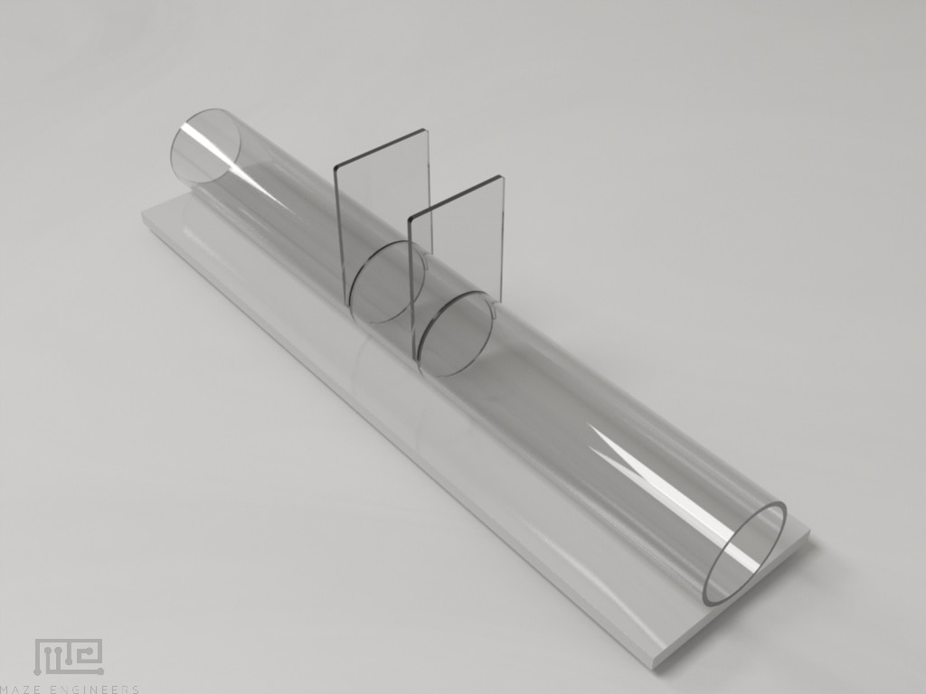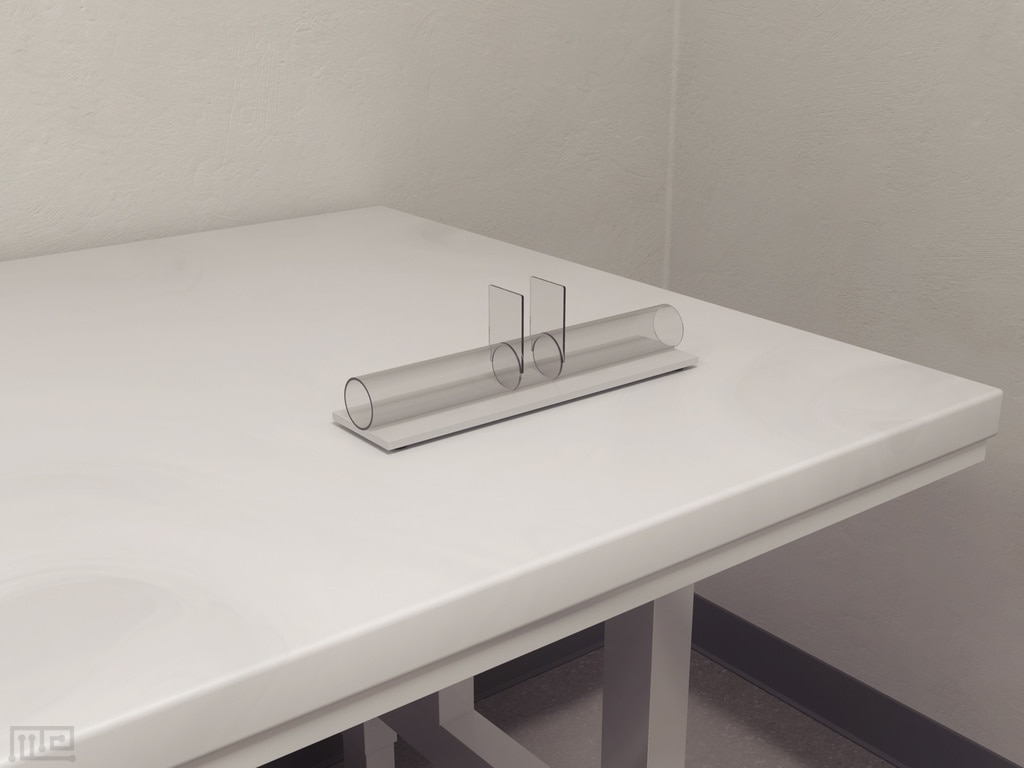 The apparatus consists of a plexiglass tube, and a small plexiglass divider is placed in the center.