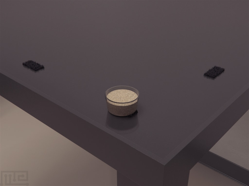 The following day, take 100 grams of unscented playground sand and mix it with 18 crushed reward pellets. Take 5 grams of this mixture in two cups each and bury 5 reward pellets in only one of the cup. Place the cups on the platform at random locations. Remove the subject from its home cage and place it on the platform. Allow the subject to dig, retrieve and consume all 5 reward pellets. Place the subject back into the home cage. Repeat this process immediately with the same cup baited with reward pellets