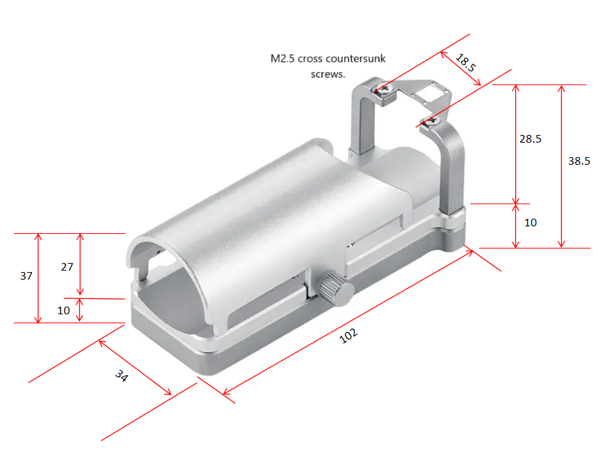 | Body cover and lid: 102mm L x 34 mm W x 38.5 mm H |