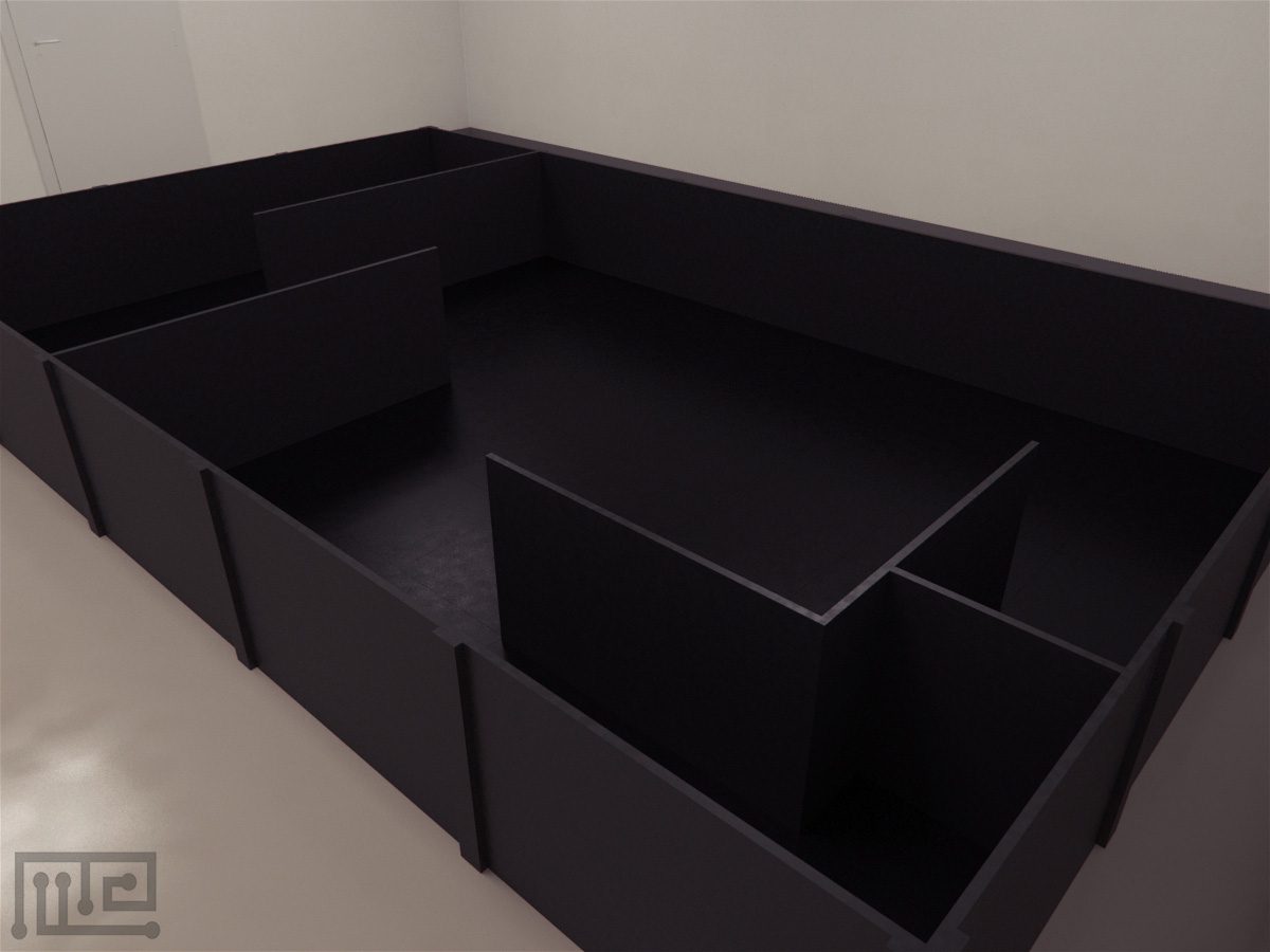 The Pig Hebb Williams maze was used in an experiment by Ingrid C. de Jong et al. (1999) to study learning and memory in pigs. It consisted of a square area with moveable internal walls, allowing the maze to be configured differently for trial. The maze configurations were developed using the concept of the Hebb–Williams maze