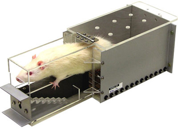 The Staircase dimensions were based on a rat model of 150 grams to 250 grams to ensure the animal cannot turn around once it has entered the test area; however, larger animals up to 450 grams have been tested regularly