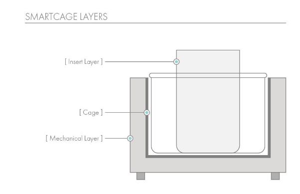 Multiple layers in the Smartcage system allows for flexible modularity in the system. Multiple modules can be exchanged in and out to suit your needs, and can be purchased a-la-cart for later utilization