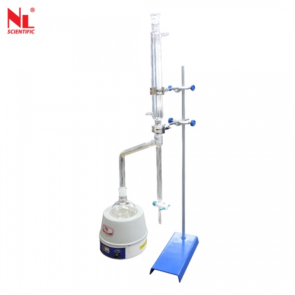 Used to determine the water in petroleum products or bituminous material by distilling them with a water inmiscible, volatile solvent.