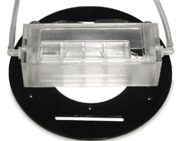 Can be used for imaging of samples on rectangular coverslips, standard slides, and chambered cover glasses. Fits on top of universal microscope adapter for standard microscopes, after removal the fitting ring for 35 mm chambers (also fits heating & cooling stages for slides).. Double optical quality glass top. Barb fitting to connect to CO2 / O2 controller. Simply put the sample inside the microscope adapter and place the incubator-cover on top