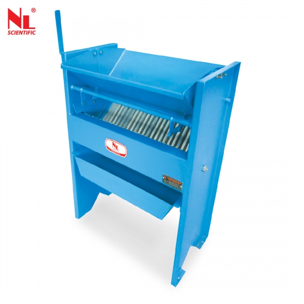 Sample Splitter very sturdily constructed with cadmium coated plated for rust protection. It is designed for the reduction of test sample which are too large in volume. It handles any material from size up to 108 mm. Each chute bar is 1/2" wide. The opening start from 1/2", 1", 1 1/2", 2", 3" & 4" are possible.